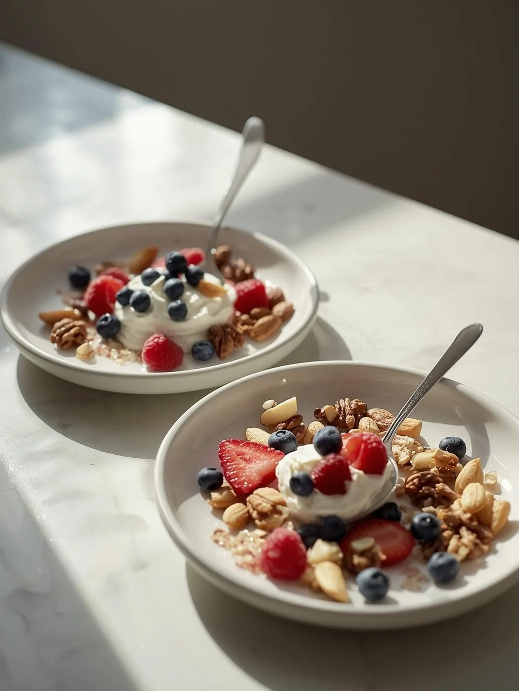 For snacks, I mix Greek yogurt with nuts, berries, or maybe a little honey. The protein really helps me stay full.