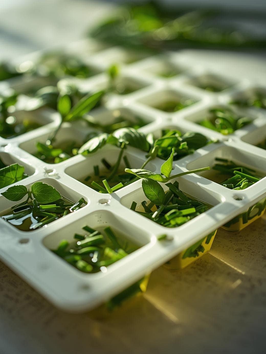 Freezing herbs in ice cube trays is genius for meal prep. You get perfect herb cubes that drop right into soups and sauces.