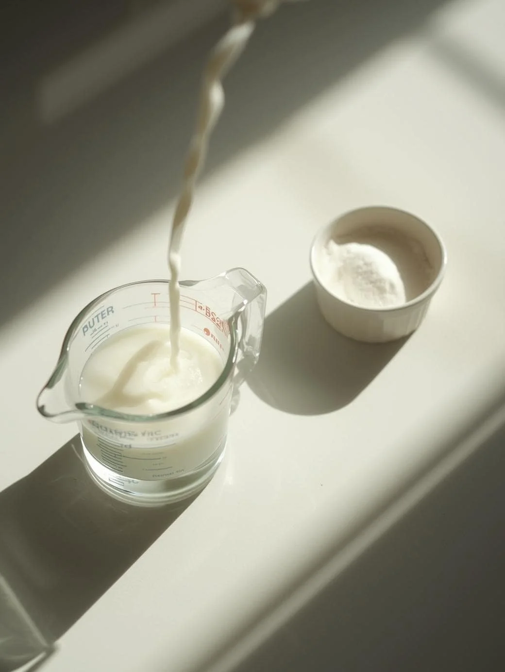 Step 1: Pour 1 cup milk into a clean glass measuring cup.