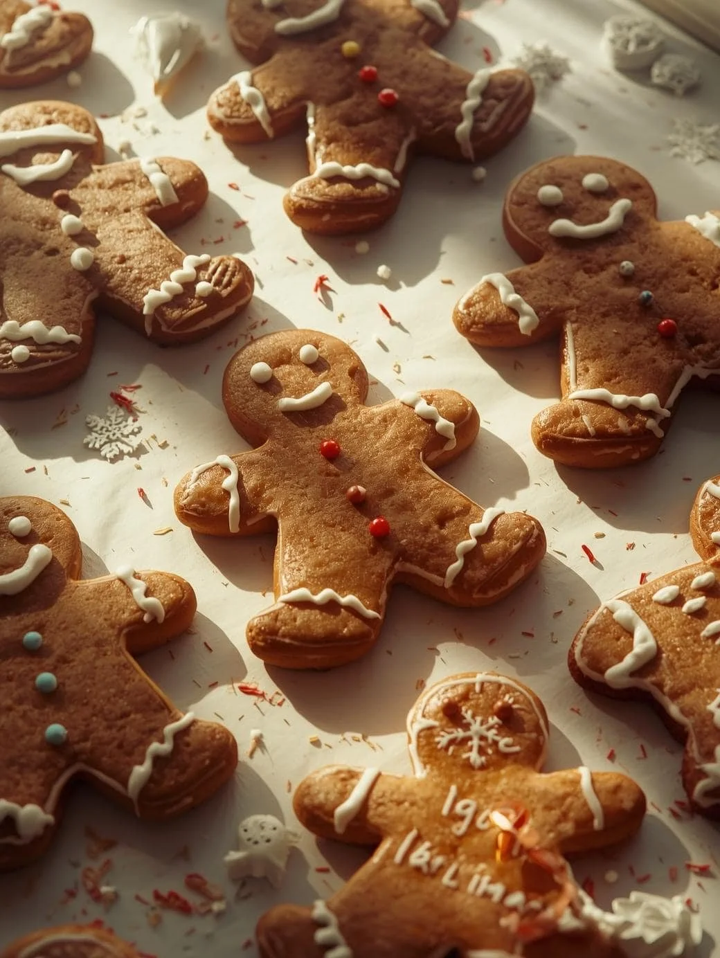 Adding faces to gingerbread people brings them to life. Two dots for eyes and a smiley line—simple but cute.