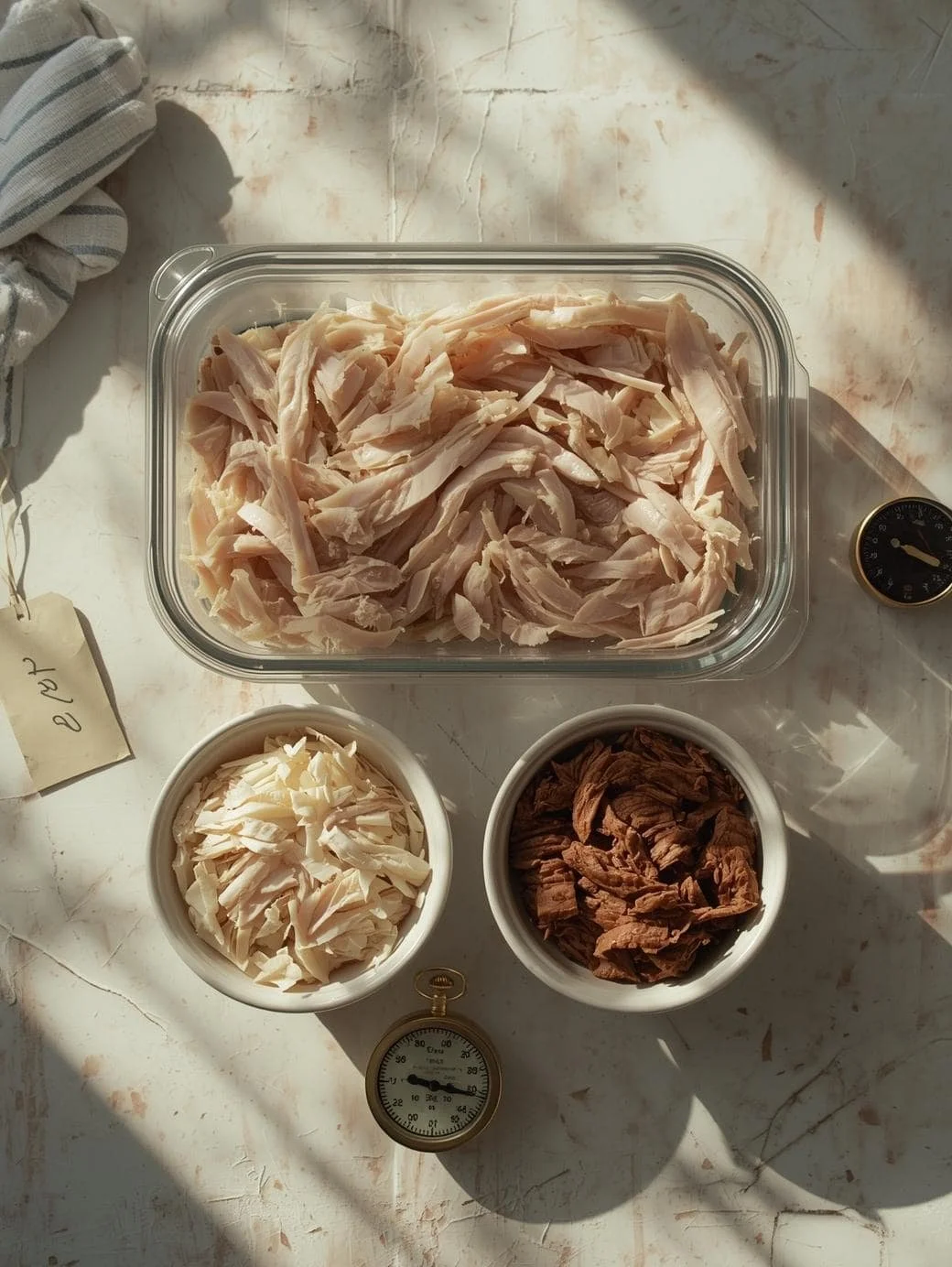 For freezing, I portion shredded turkey into meal-sized amounts. Flat freezer bags work better than containers—they thaw faster.
